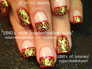 40's inspired nails, movie star nails, glam nails, vamp nails, dita von teese nail, marilyn monroe nail, celebrity nail, red border nail, outline/border nail, silver and black reverse french, border french outline, border outline animal print, veronica lake nail, starlet nails, robin moses, vixen nail art, siren nails, screen siren nail art,