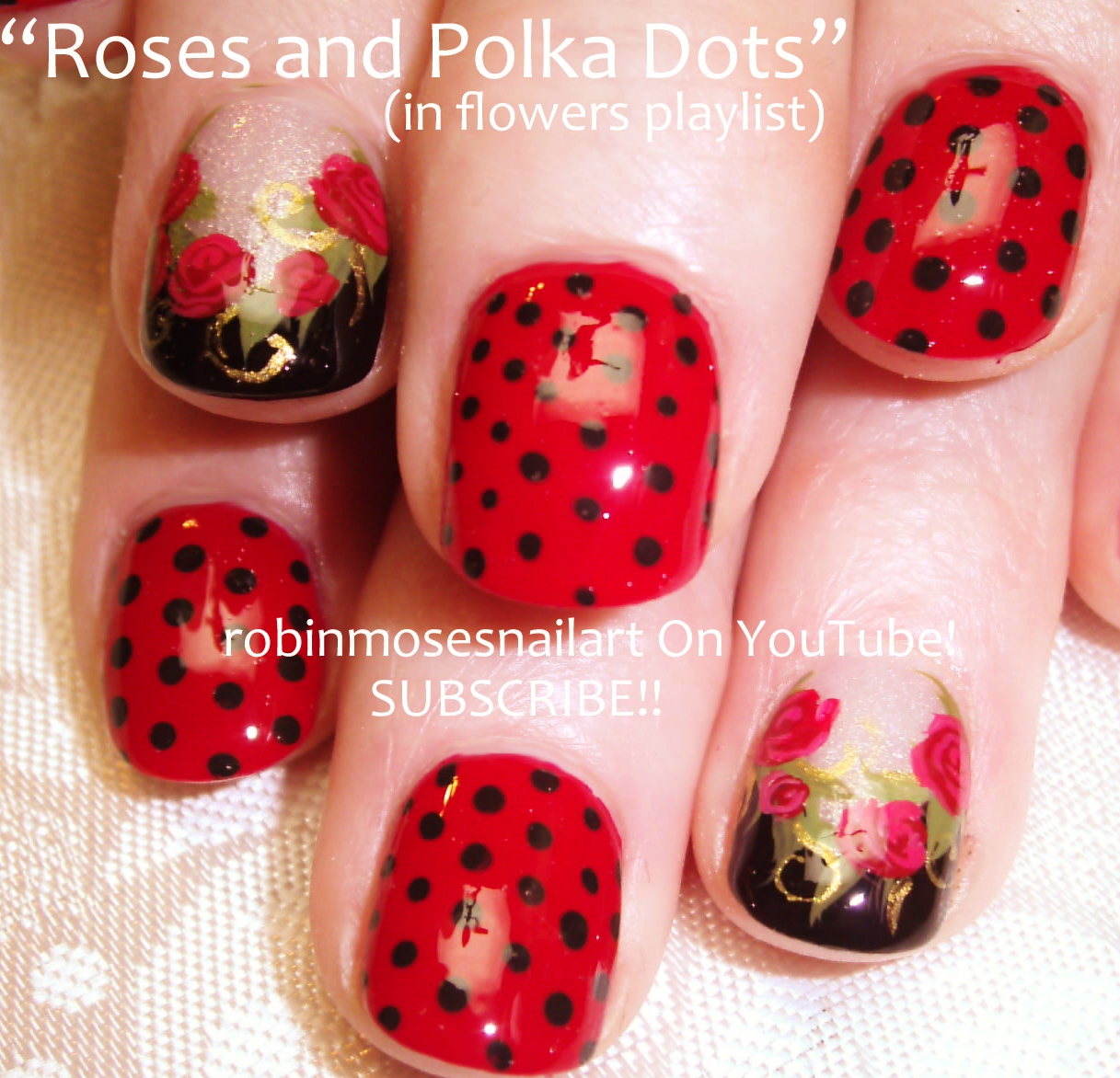 red roses and polka dots, polka dot nail design, rockabilly nails, rockabilly nail art, 40's inspired nail art, 1940's nail art, 50's nail art, rock and roll nail art, rotary nail art, pin up girl nail art,
